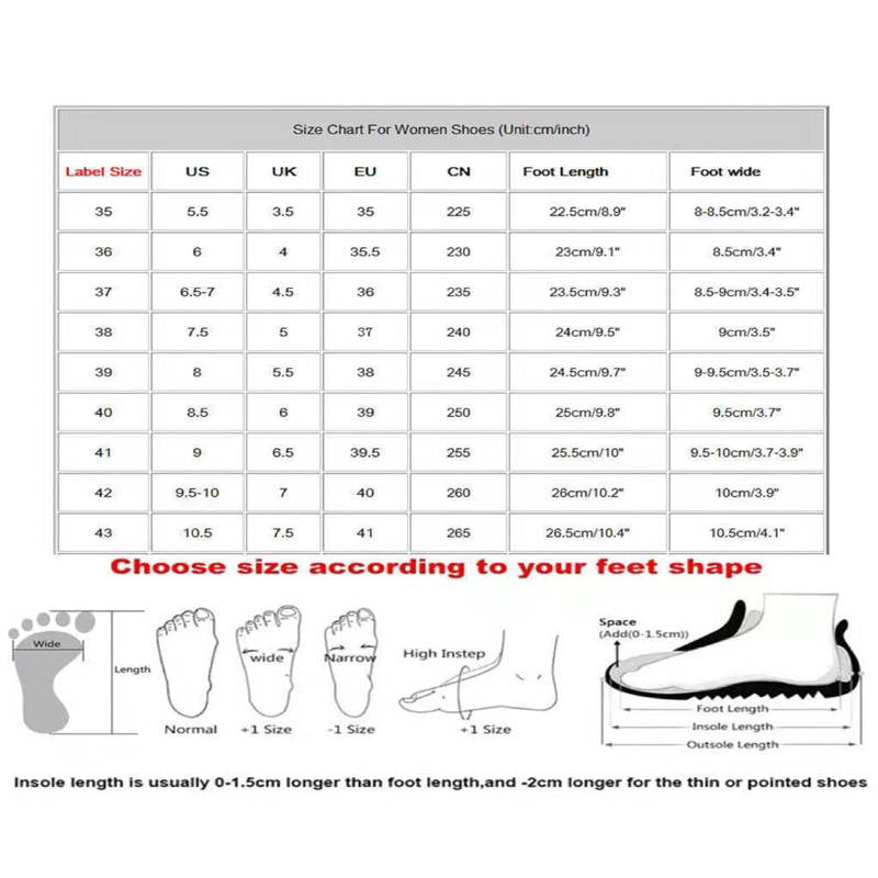 - Please refer to the shoe size chart in the picture before buying shoes to get the correct size. Since the dimensions are manually measured, there may be some errors. Please measure the length of your feet to get the best fit. Due to the different display and lighting effects of the monitor, the picture may not reflect the actual color.