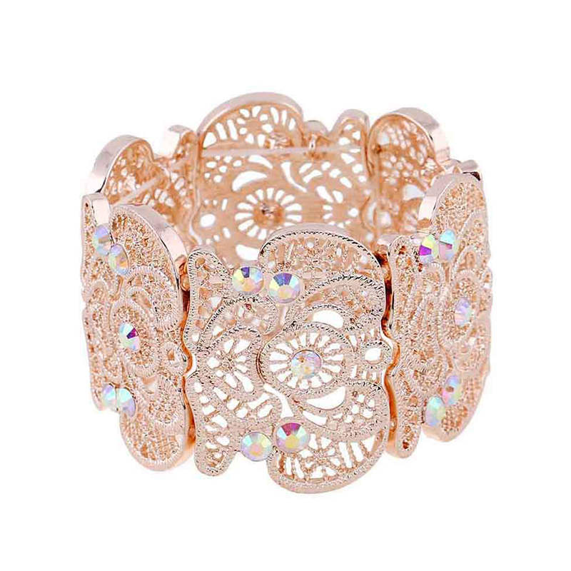 Womens Vintage Filigree Cuff Bangle Bracelet-RoseGoldAB