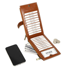 Womens Wallet RFID Blocking Credit Card Holder Large Capacity Bifold Multi Card Case with Zipper Pocket-Brown