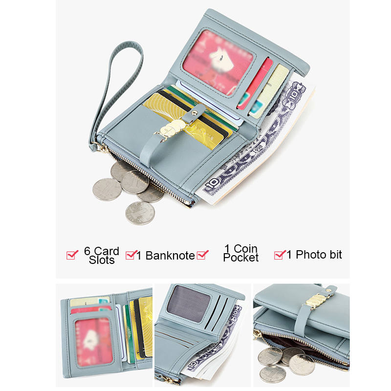 Womens Wallets Small Rfid Bifold Change Purse with Wrist Strap-Green