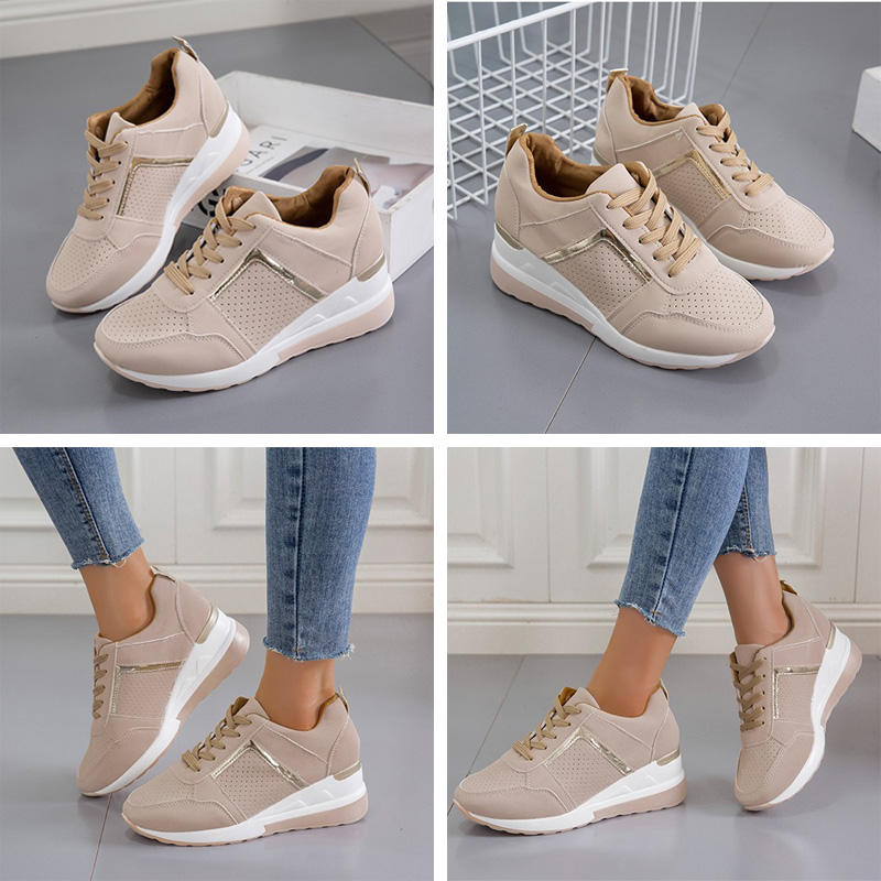 Womens Wedge Sneaker Hidden Lace-up Breathable Casual Shoes-Beige