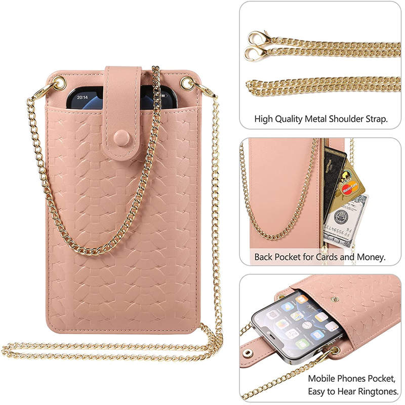 - Cell phone purse made of premium PU Leather With woven pattern, eco-friendly and lightweight, durable to resists stretching and fading over time | Snap-on button closure for easy access to your stuff in the bag.