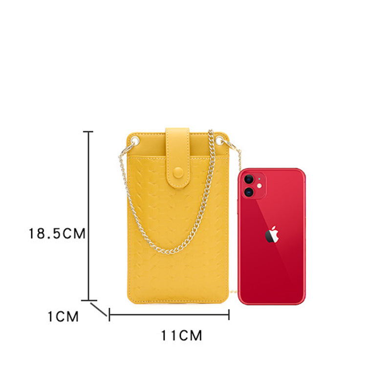 - Cell phone purse made of premium PU Leather With woven pattern, eco-friendly and lightweight, durable to resists stretching and fading over time | Snap-on button closure for easy access to your stuff in the bag.