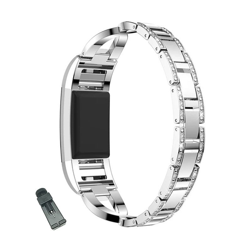 X Shape Bling Stainless Steel Watch Band Adjustable Wristband Replacement Sport Strap For Fitbit Charge 2/Fitbit Charge 3 For Women-Silver