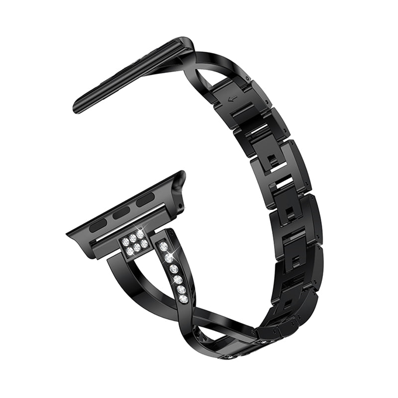 X Shape Watch Band Quick Adjustment Business Stainless Steel Wristbands for Apple IWatch Series SE/1/2/3/4/5/6 For Women-Black