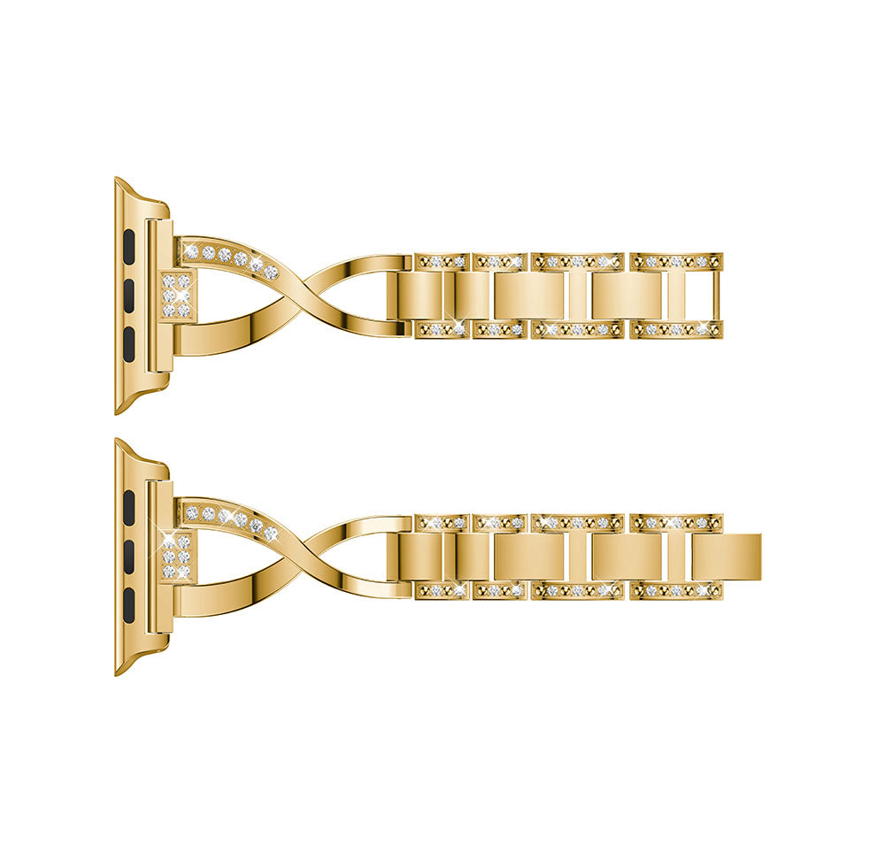 X Shape Watch Band Quick Adjustment Business Stainless Steel Wristbands for Apple IWatch Series SE/1/2/3/4/5/6 For Women-Gold
