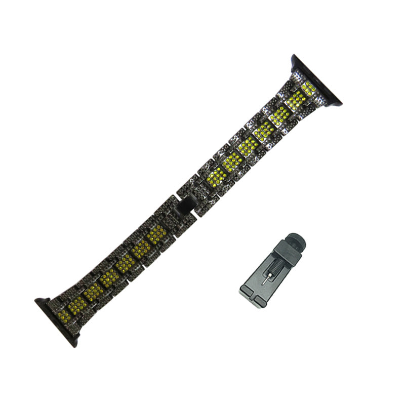 ZJZ White+Yellow Diamond Stainless Steel Watch Band Adjustable Wristbands for Apple IWatch Series SE/1/2/3/4/5/6 For Women-Black